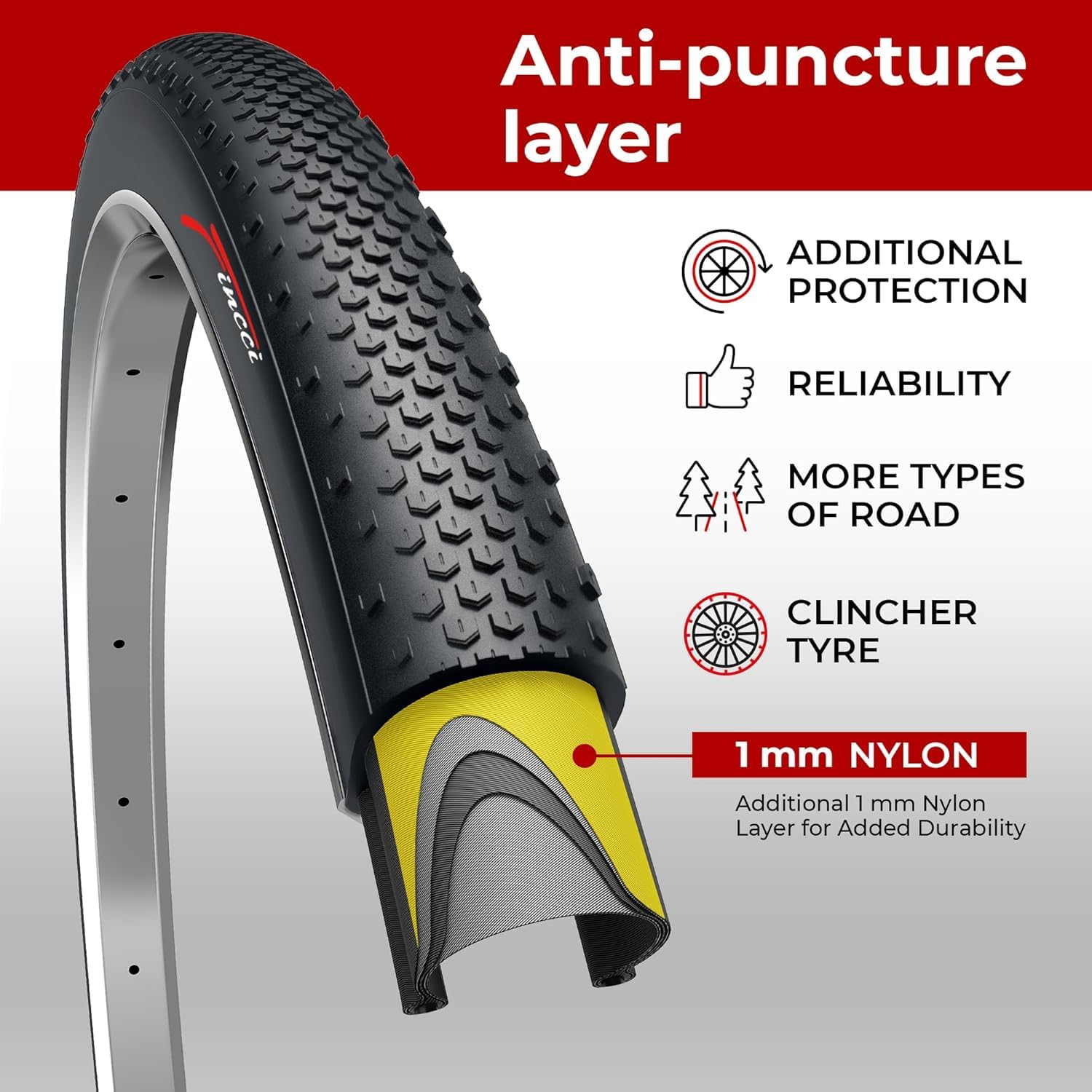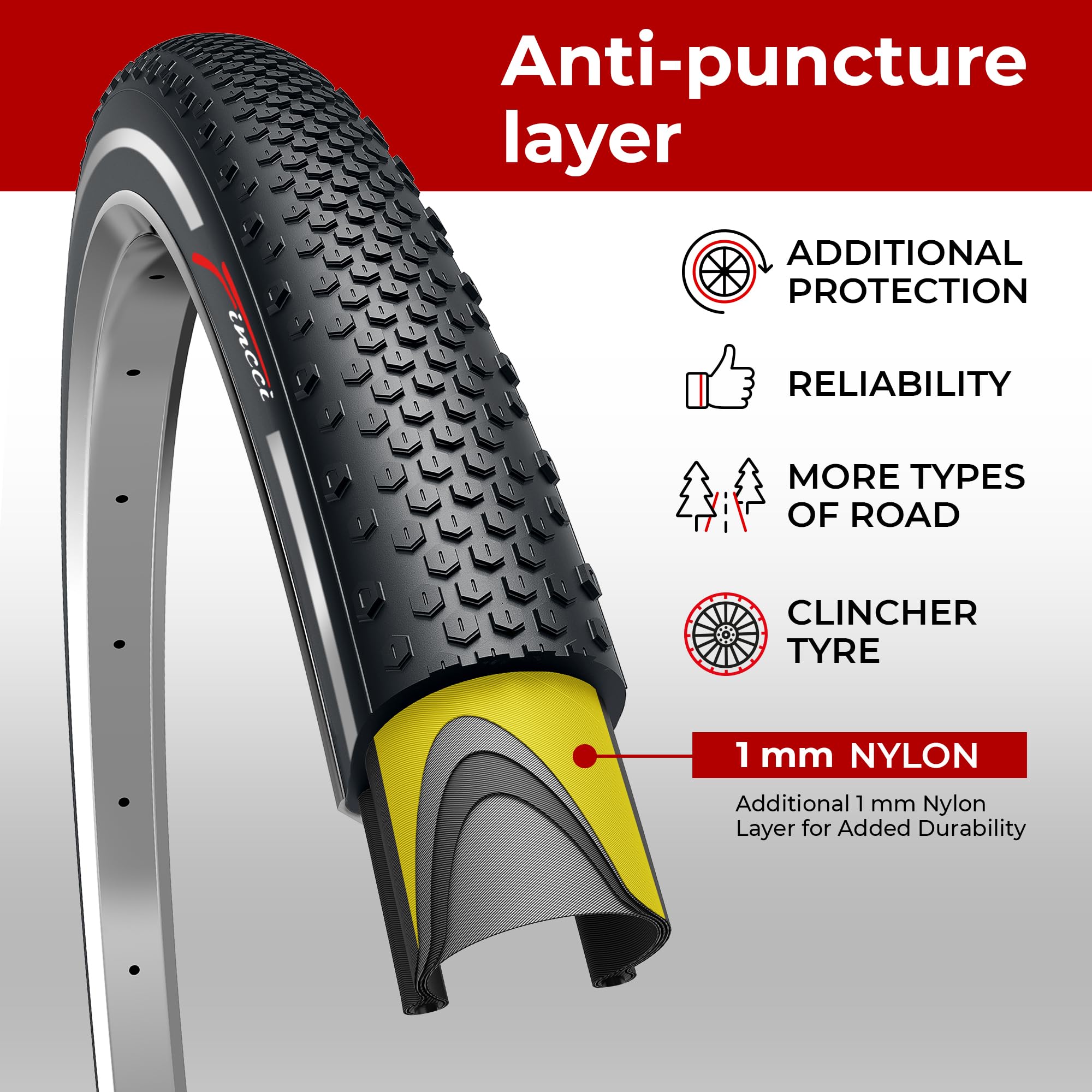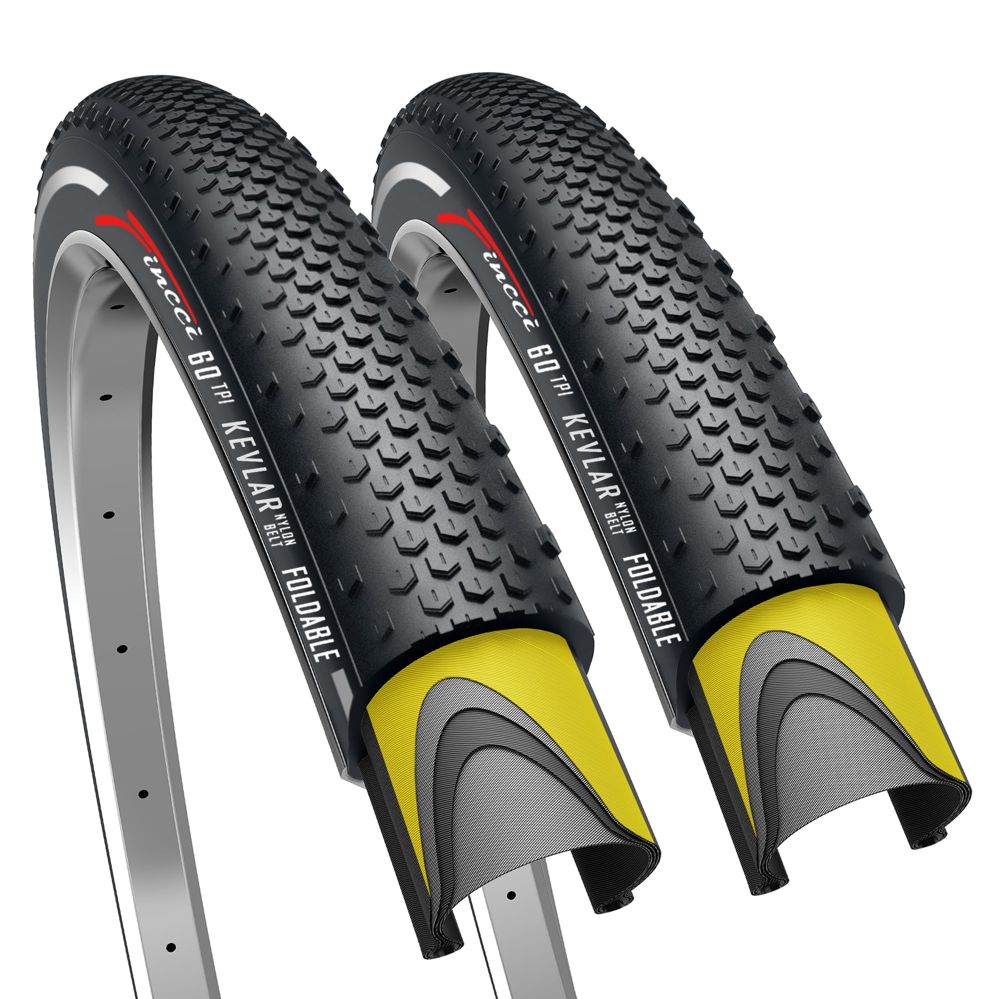 Fincci 700 x 38c Tires, 40-622, 1mm Antipuncture Protection, Tough & Durable Nylon Rubber, Kevlar Bead, Set of 2 – Compatible with Gravel, Cyclocross, MTB, Hybrid & Electric Bikes