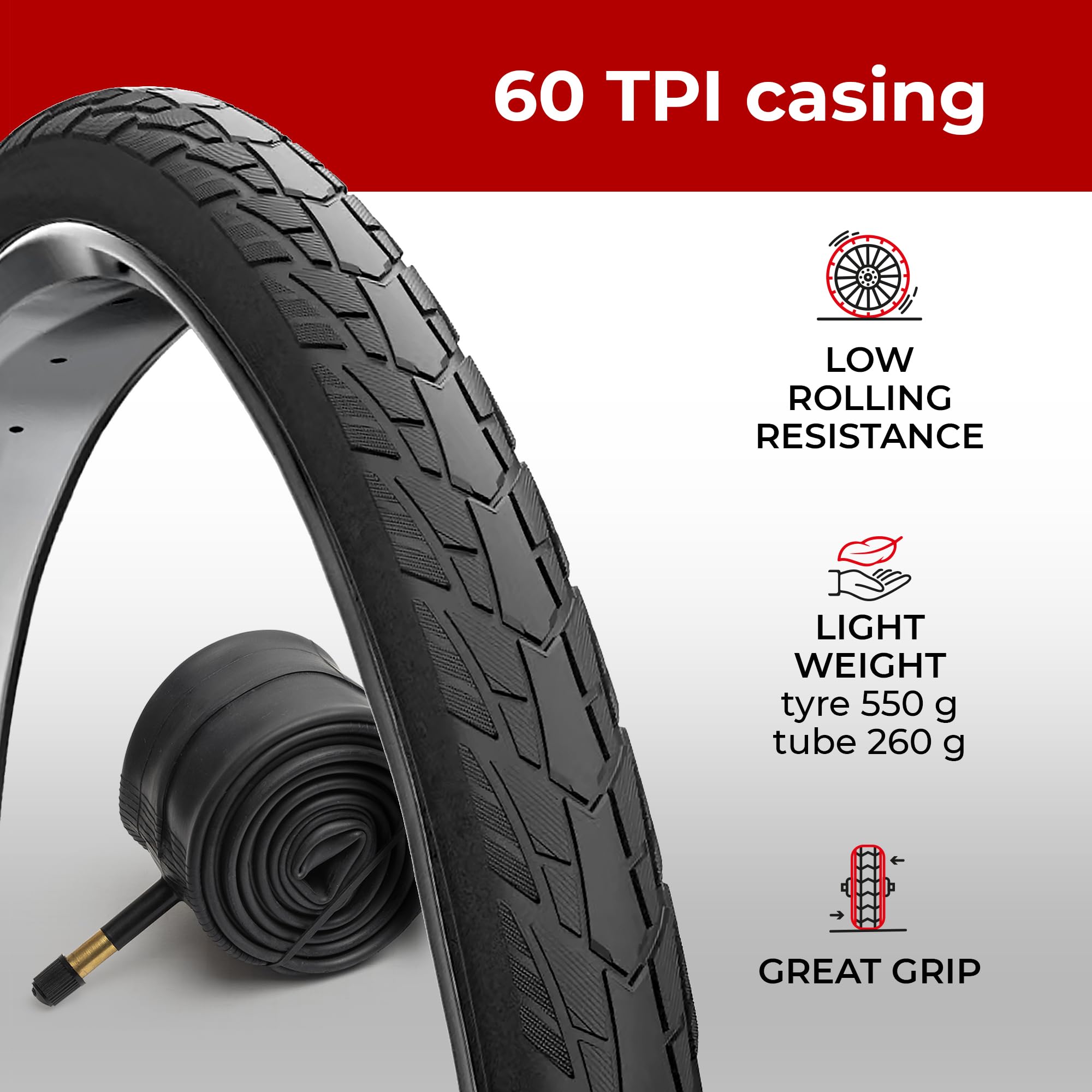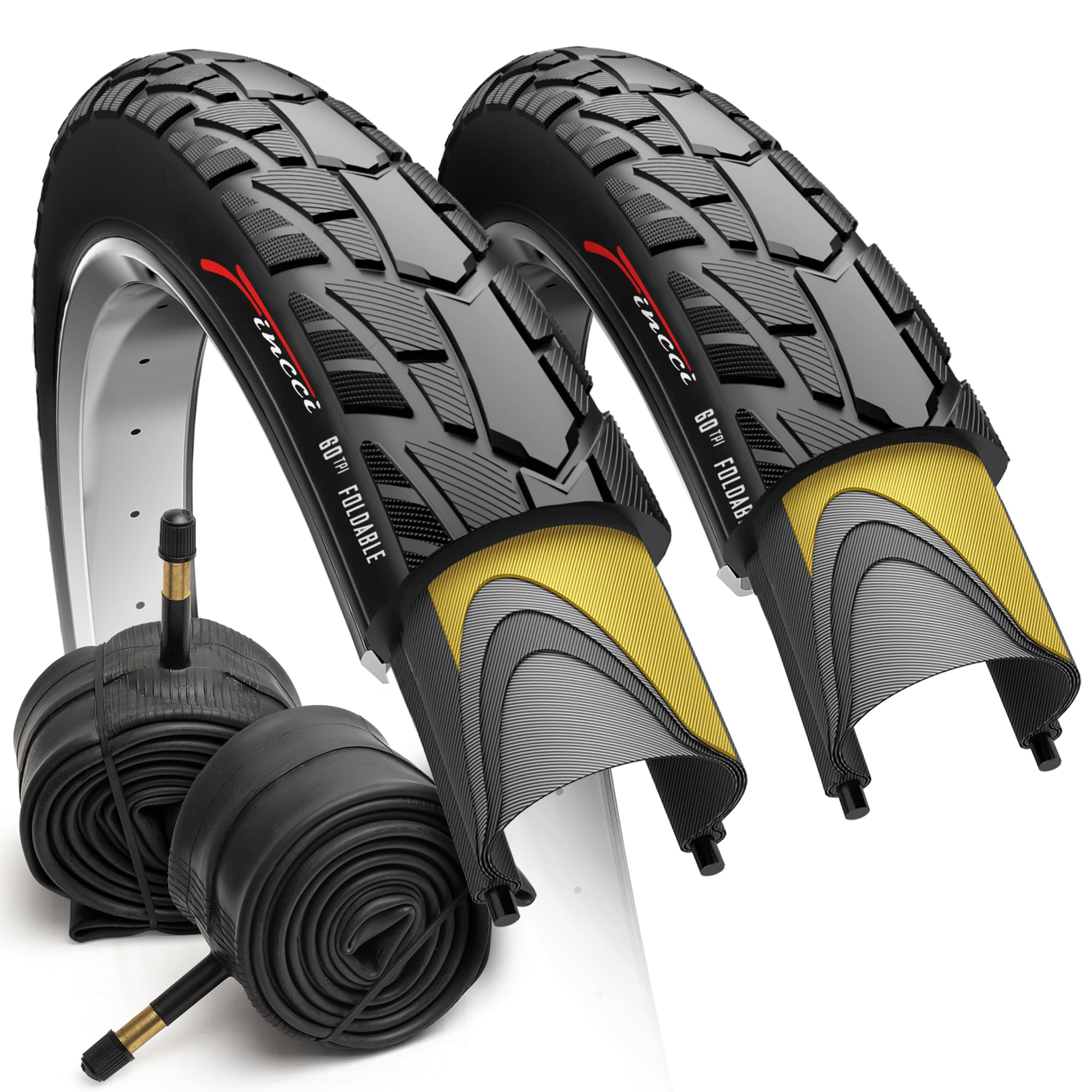 Fincci 700x40c Bike Tires, 42-622, Foldable, 1mm Nylon Antipuncture Protection with 48mm Schrader Valve Inner Tubes, Tough & Durable, Pack of 2 – for Gravel, Road, Hybrid & Touring Bicycles