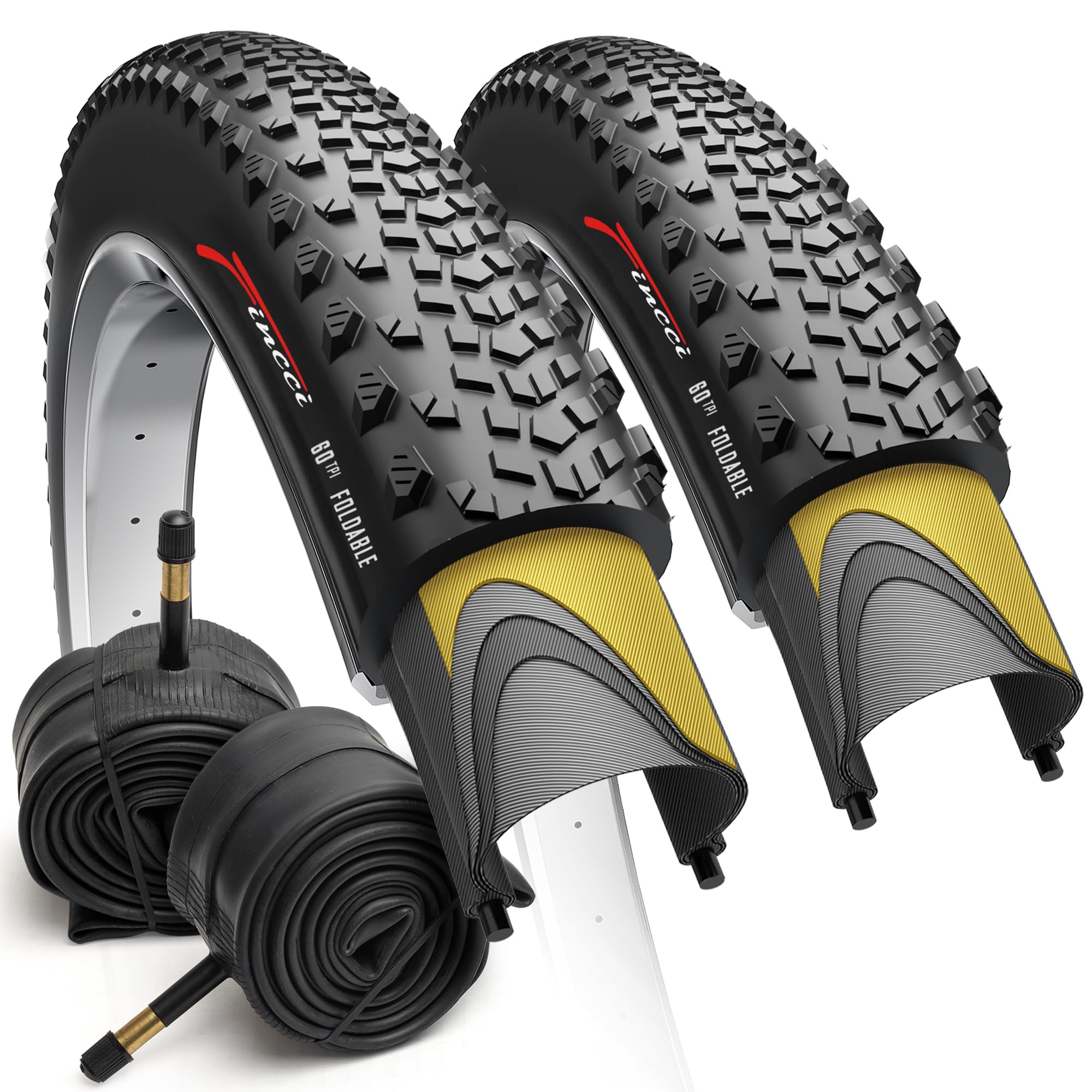 Fincci 700x40c Gravel Bike Tires, 42-622, Foldable, 1mm Antipuncture Protection with 48mm Schrader Valve Inner Tubes, Tough & Durable, Set of 2 – Compatible with Gravel, Hybrid & Electric Bicycles