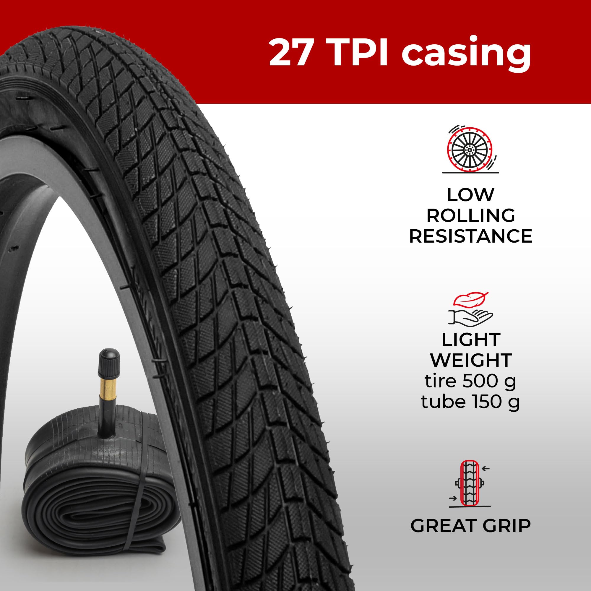 Fincci BMX 20 x 1.75 Bike Tire and Tube - Foldable 20 inch Bike Tire, 47-406 20 inch Bike Tube Schrader, 27 TPI for Kids, Teen & Adults and Tricycle Road, Trick, Trike, Electric Freestyle Bike