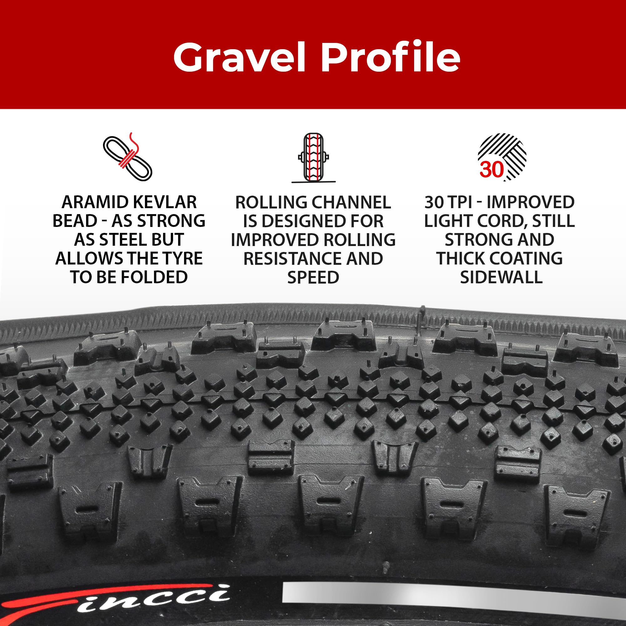 Fincci Gravel 700x38c Bike Tire - Foldable Kevlar 40-622 700x38c Bike Tire with 1mm Antipuncture Resistant for 700c Bike Wheels & Electric, Road, MTB, Mountain, Hybrid Bicycle