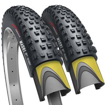 • 1mm Nylon Antipuncture Protection. Weight: 735gr 1.62lb each 27.5x2.35 mountain bike tires. Package consists of 2 x 27.5 x 2.35 bike tires. 1 Tire size when folded: 10.2x5.1x3.9 cm.
