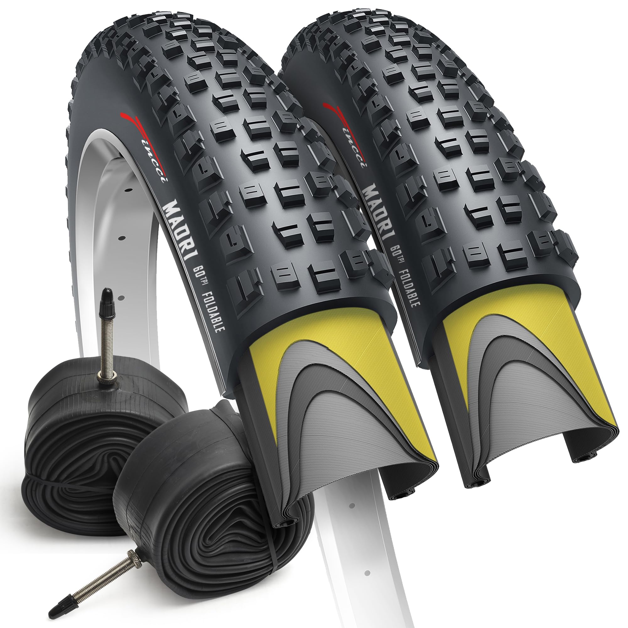 Fincci Maori 29 x 2.25 Inch Bike Tire Foldable 57-622 60 TPI with Nylon Protection and Presta Valve Inner Tubes 48mm for Mountain Enduro Gravel MTB Hybrid Bicycle