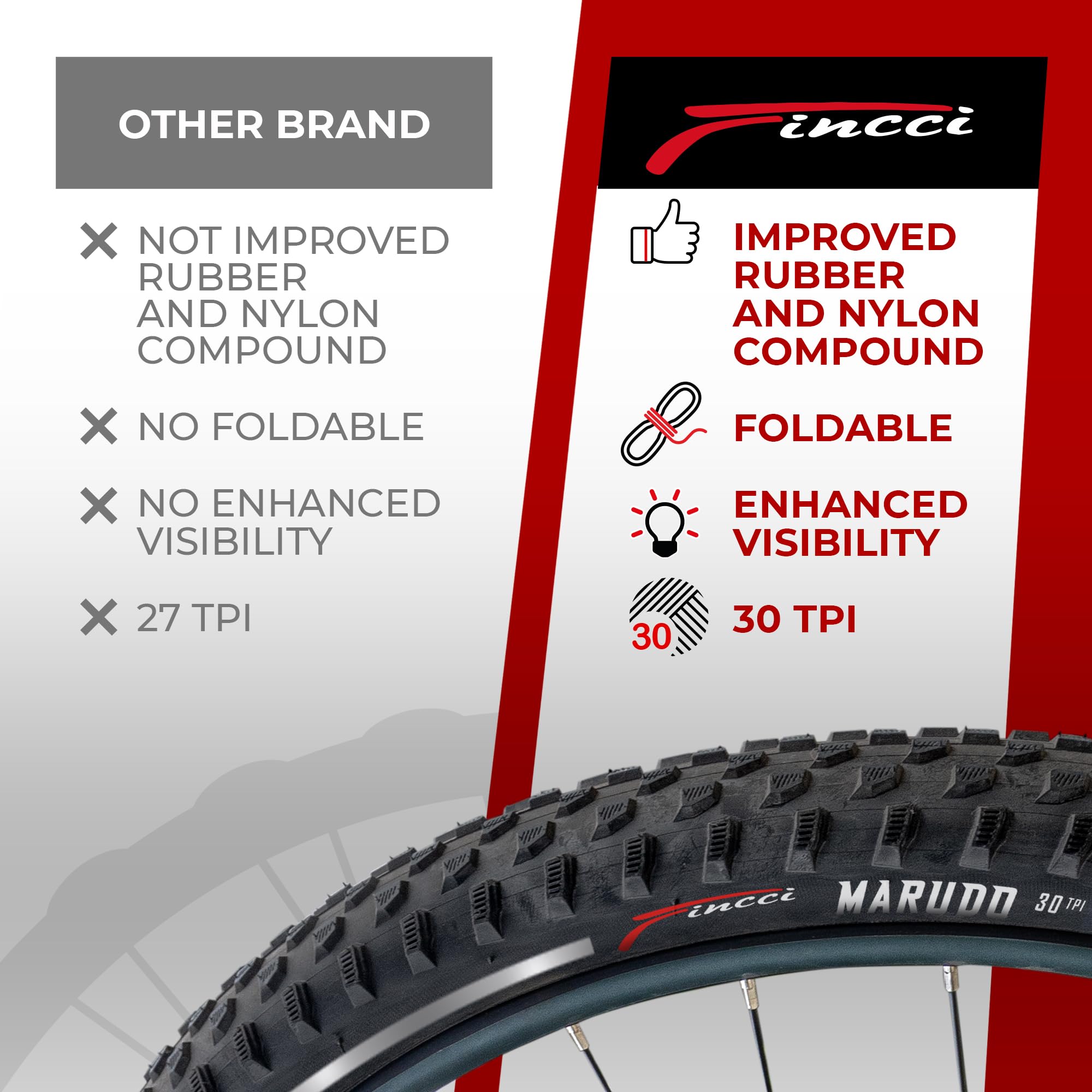 Fincci Marudo 29 x 2.10 Inch Bike Tire, 52-622, Reflective Wall, Foldable, Tough & Durable Nylon Rubber, Kevlar Bead, Set of 2 – Compatible with MTB, Gravel & Hybrid Bicycles