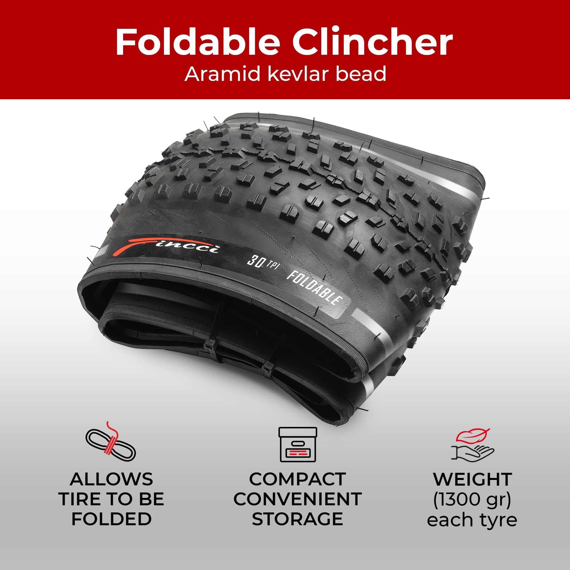 Fincci Pair 26x4.0 Fat Bike Tires - Big 26 inch Bike Tires, 100-559 - 30 TPI - Foldable 26x4 Fat Tire for Cycling on Mountain, Road, Hybrid, Dirt Bike, Street Tires for Ebike - 26er MTB Accessories