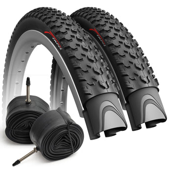 Fincci Pair 27.5 x 2.10 Mountain Bike Tire 54-584 Foldable Tires with Presta Inner Tubes for Road MTB Mud Dirt Offroad Bicycle - 27.5x2.10 Tire Pack of 2