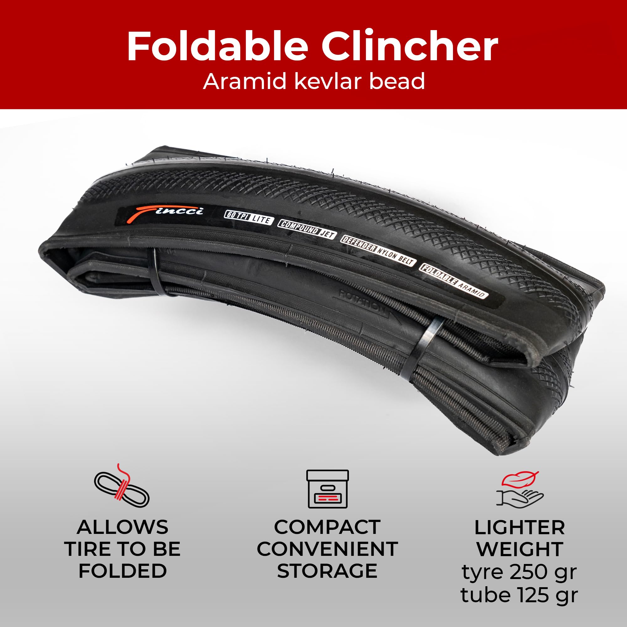 • Foldable and Versatile Fit: Sized at 700x28c (ETRTO 28-622), compatible with 700c and 28" wheels; suitable for 28x1 5/8 x 1 1/8 tire replacements; folds for convenient storage.