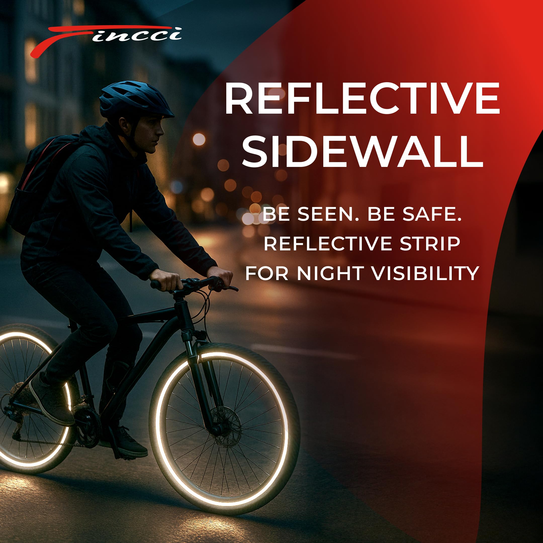 Fincci Pair 700x38c Foldable Bike Tires, 40-622, with 1mm Antipuncture Protection – Ideal for Electric, Road, Mountain, MTB, and Hybrid Bikes (Pack of 2) (Reflective)